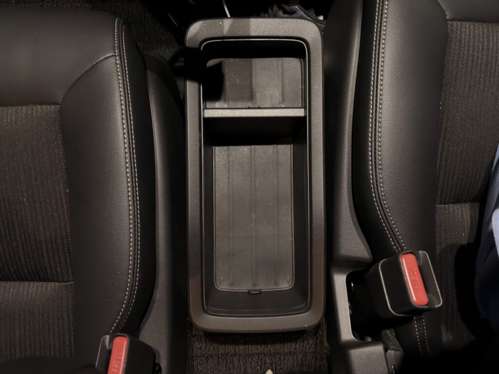 乗り始めて最初に「なんだこれ?」と思ったのが、運転席と助手席の間にある収納(センターコンソール)です。